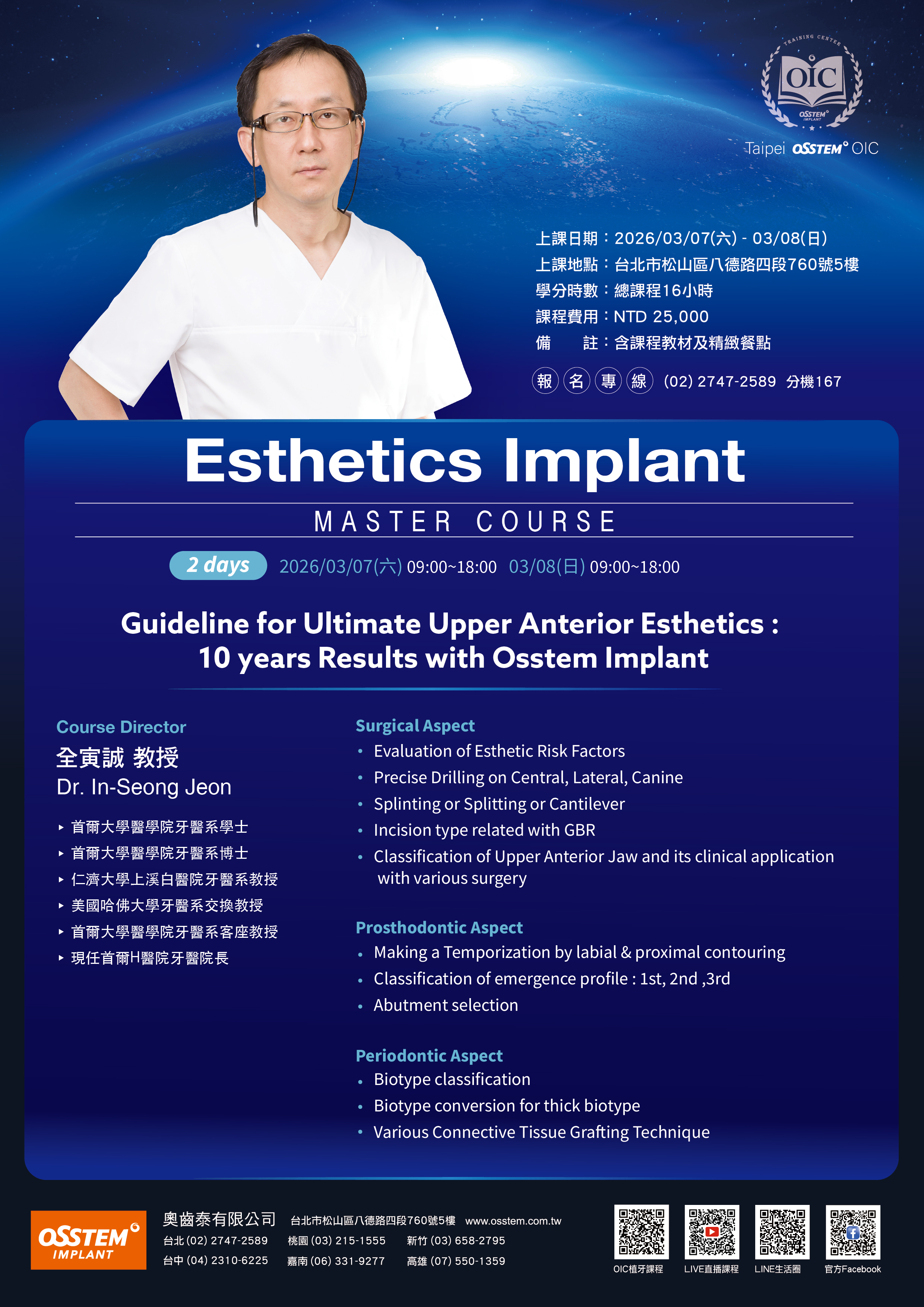 AIC 課程: 台北 - Esthetics Implant course - 全寅誠 教授